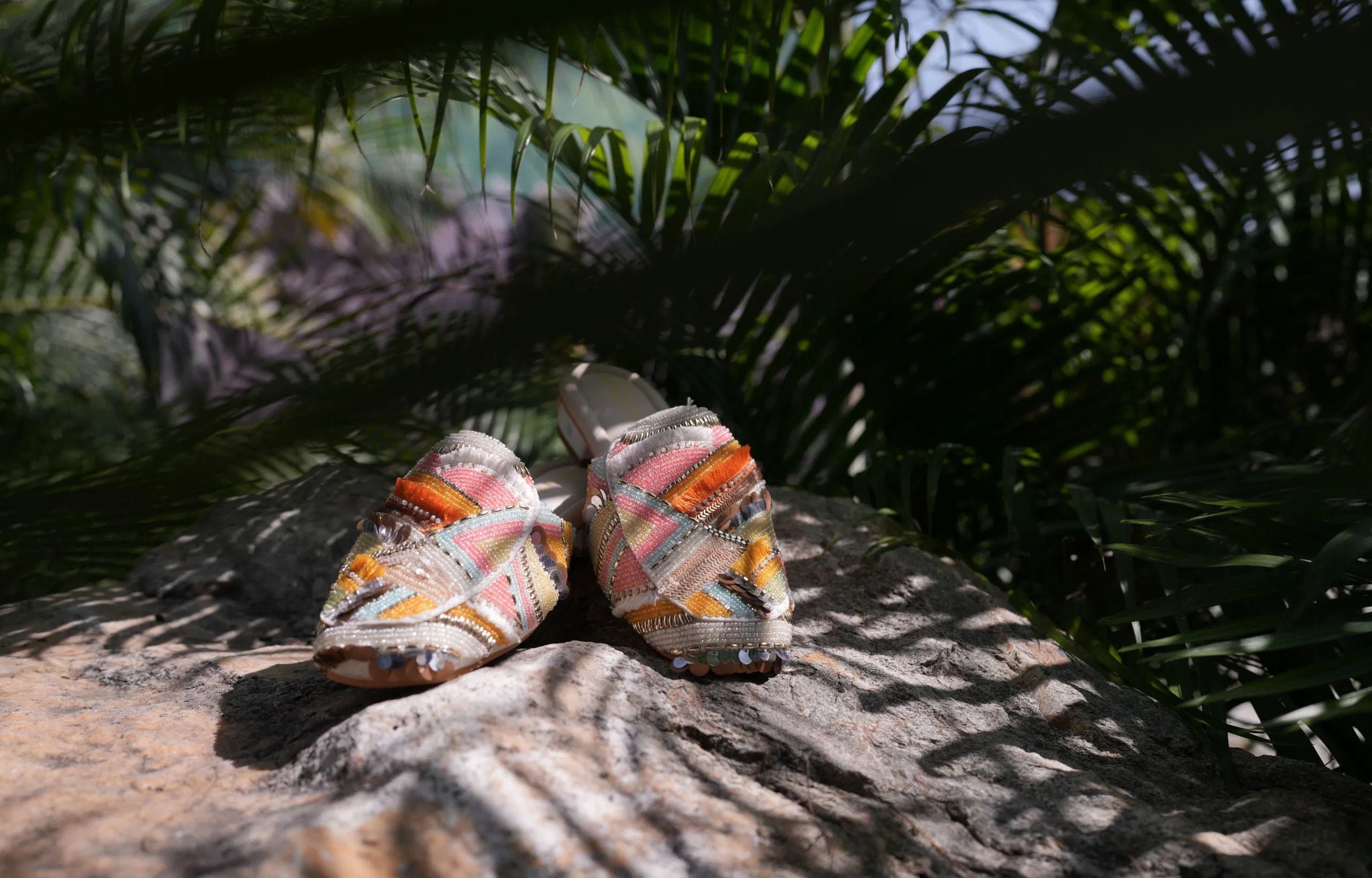 Discover Peshawari sandals and loafers reinterpreted with mirror inlays, suede thread-on-thread finishes, and earthy leather tones.